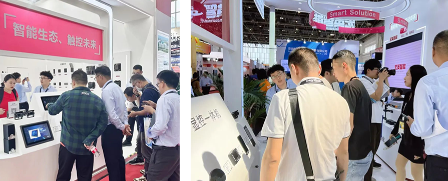 此外最为抢眼的还得数人机交互区域,最新的智能座舱系列产品、显控一体机等设备,吸引众多客户驻足体验互动,设备不仅可实现上电即用,并且环境可靠性高,适用于各种恶劣环境,再配合智能按键面板以及电源管理模块,可拓展更多用户自定义功能,为客户量身打造多元化的智能座舱场景。